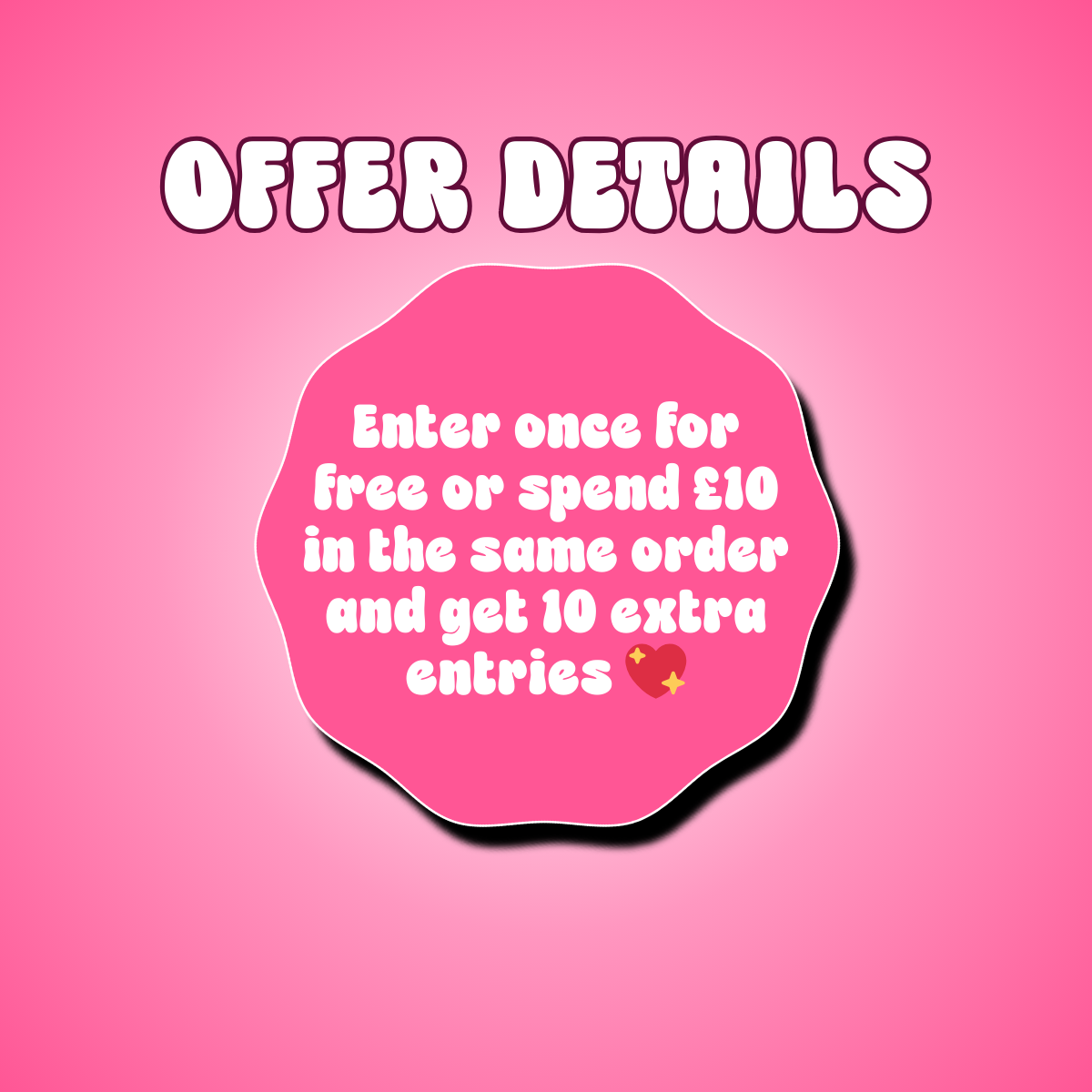 Want to boost your chances? Spend £10 in the same order and you’ll receive 10 extra FREE entries