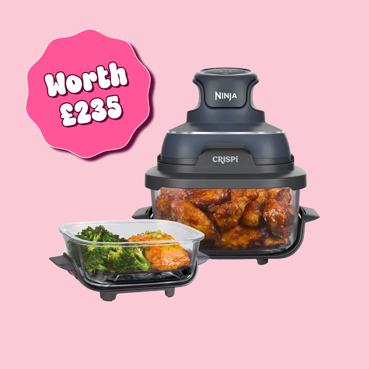 This competition prize is the sleek, powerful and packed-with-possibility Ninja Crispi 4-in-1 Portable Glass Air Fryer.
